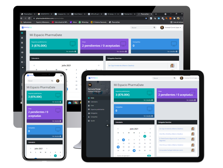 Pharmadate ha sido desarrollada para poder ser utilizada en multitud de dispositivos con el objetivo de adaptarse a las necesidades de Laboratorios, Delegados Comerciales y Farmacias.